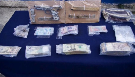 Durante la intervención, las autoridades aseguraron vegetal verde y seco con características similares a la marihuana, polvo blanco con apariencia de cocaína, así como un arma de fuego tipo escuadra con cargadores abastecidos. Además, se decomisó dinero en efectivo por 213 mil 370 pesos y 5 mil 300 dólares, así como un vehículo RAM 2500, modelo 2017.