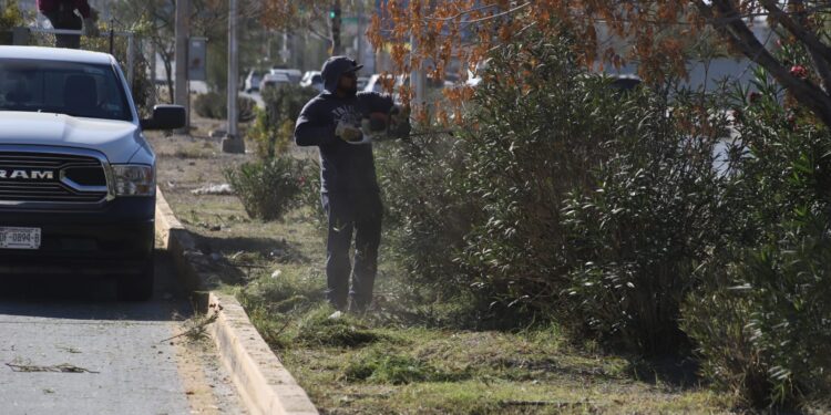 Ciudad Juárez, Chih.– La Dirección de Parques y Jardines continúa con labores de mantenimiento en el camellón central de la avenida Tecnológico, como parte del compromiso del Gobierno Municipal por mejorar la imagen urbana y dignificar los espacios públicos en beneficio de los juarenses.