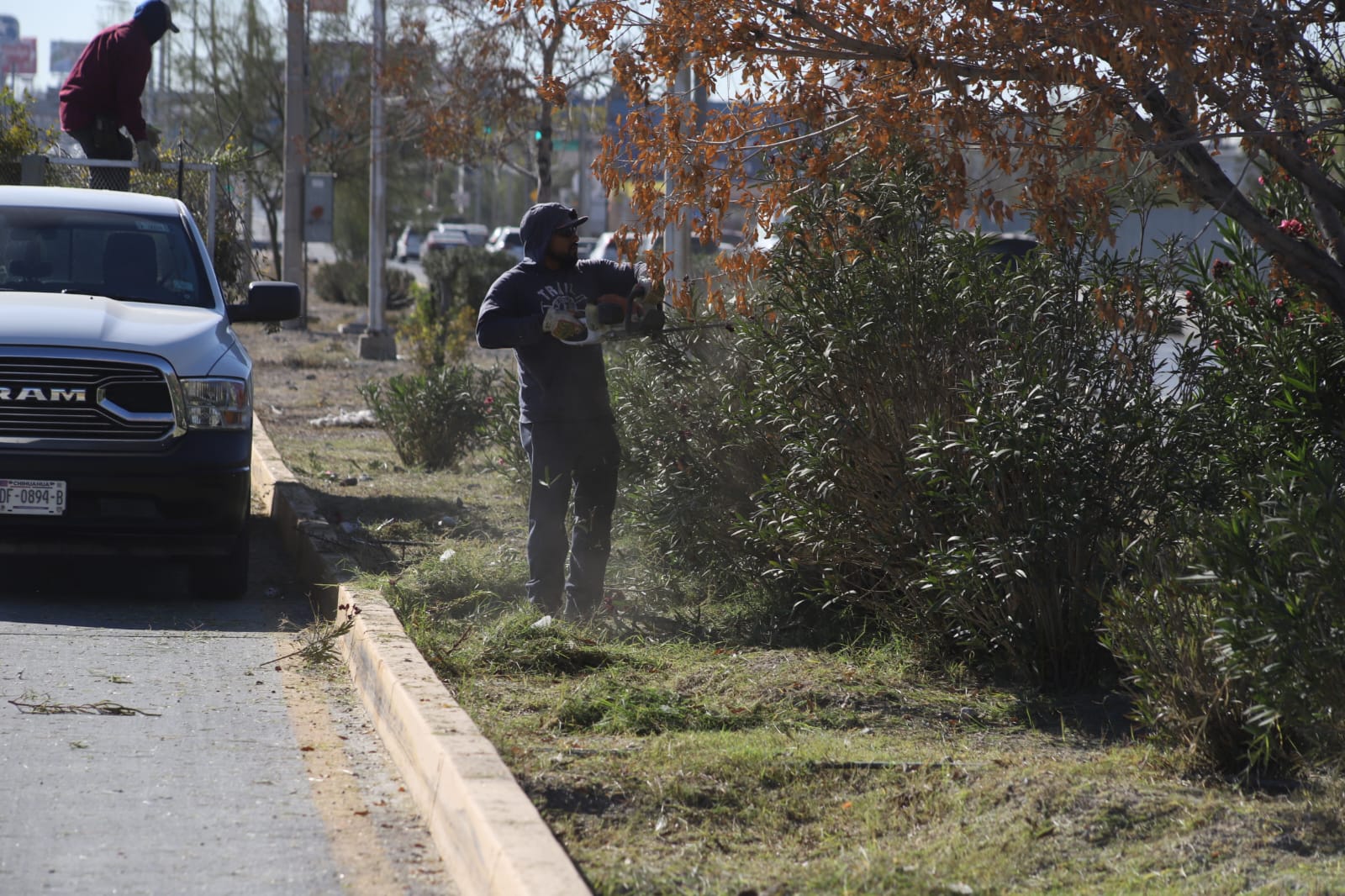 Daniel Zamarrón Saldaña, titular de la dependencia, informó que las acciones se llevan a cabo en el tramo comprendido entre la avenida Teófilo Borunda y la calle Cesáreo Santos, donde se realizan trabajos de limpieza general, corte de hierba, poda formativa de árboles, así como retiro de basura y residuos derivados de las labores de mantenimiento.