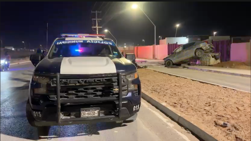 Ciudad Juárez, Chih.- Una persecución vehicular terminó con un aparatoso choque en el fraccionamiento Privadas Valencia, cuando un conductor se impactó contra una barrera de protección tras intentar huir de las autoridades.