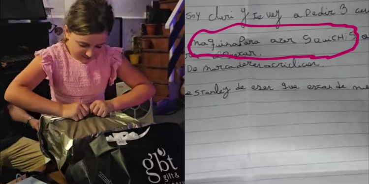 El clip, publicado originalmente en Instagram por el usuario @yamilsantoro, muestra la reacción de sorpresa de la menor al notar el inesperado contenido del regalo. Según se explicó, la confusión se habría originado por la dificultad para leer la carta escrita a mano por la niña, lo que llevó a un error al momento de elegir el obsequio.