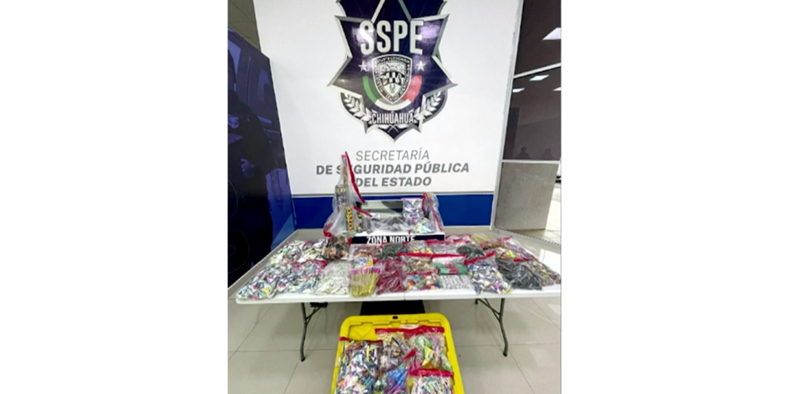 Ciudad Juárez, Chih.- Como parte de las acciones preventivas en temporada decembrina, agentes de la Policía Estatal realizaron el aseguramiento de 4 mil piezas de pirotecnia y la detención de un joven de 22 años, identificado como Daniel U. V., quien ofrecía el producto de manera irregular en la zona Centro, particularmente en el cruce de Rafael Velarde y La Paz.