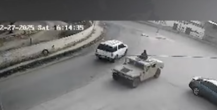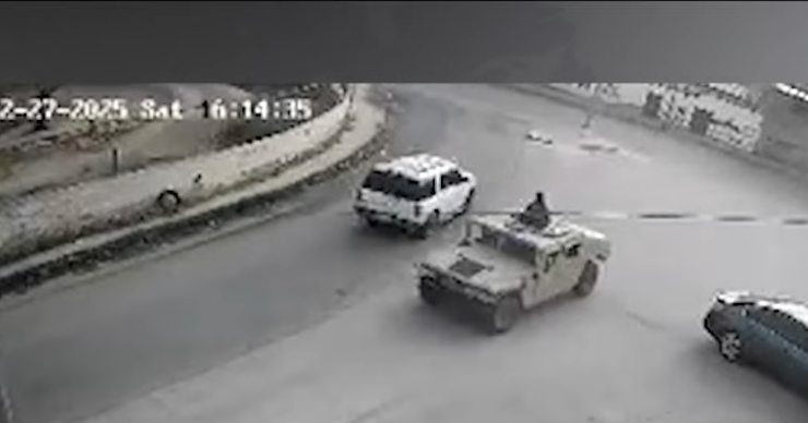 Acto seguido, se muestra cómo dos unidades tipo tanqueta pertenecientes al Ejército Mexicano llegan a la escena y emprenden la persecución a pie de los sospechosos.