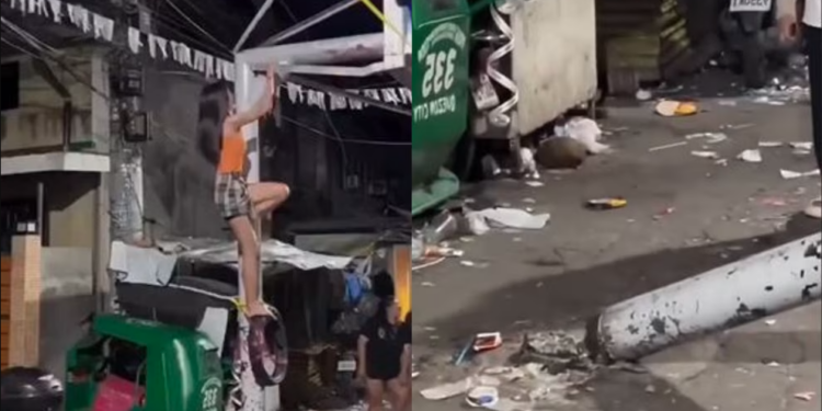 El hecho ocurrió durante una barangay fiesta, celebración popular en comunidades filipinas, donde los asistentes grabaron el momento exacto en el que la joven trepó la estructura deportiva y comenzó a bailar provocativamente ante la euforia del público. Gritos y aplausos no se hicieron esperar, pero la escena cambió repentinamente cuando el poste del aro cedió, colapsó y provocó su caída.