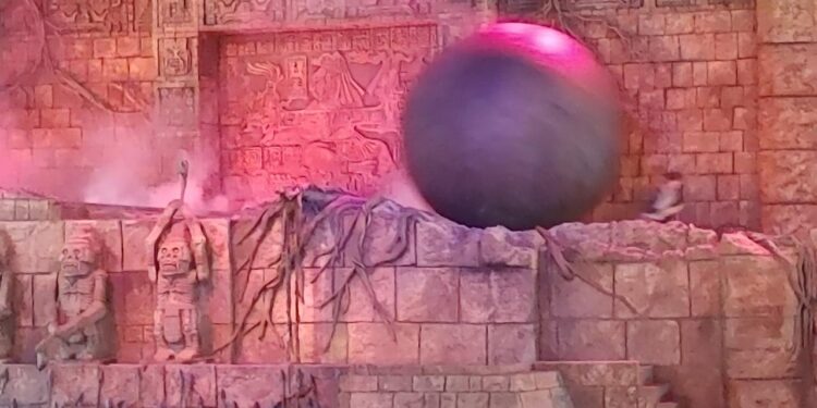 El hecho ocurrió el pasado martes durante la recreación en vivo de una de las escenas más icónicas de la película Raiders of the Lost Ark (1981), protagonizada por Harrison Ford. En dicha secuencia, el personaje de Indiana Jones huye de una enorme roca que rueda hacia él tras activar una trampa.