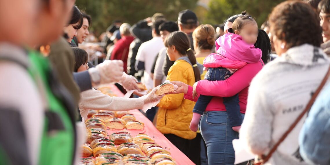 Ciudad Juárez, Chih. – Cientos de familias juarenses se congregaron el pasado martes en el Parque DIF, ubicado sobre la avenida Heroico Colegio Militar, para celebrar el Día de los Reyes Magos con una monumental rosca de reyes de 300 metros de longitud.