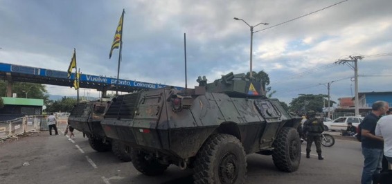 Cúcuta.— El gobierno de Colombia desplegó unidades blindadas del Ejército en el puente internacional Simón Bolívar, en la frontera con Venezuela, en una acción que coincidió con manifestaciones de familiares de personas detenidas en territorio venezolano, quienes exigieron información sobre el paradero y la situación jurídica de sus seres queridos.