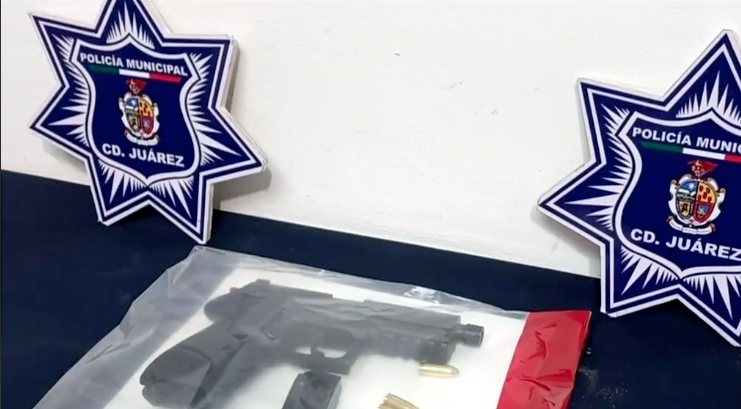 Ciudad Juárez, Chih.- Elementos de la Policía Municipal aseguraron un arma de fuego como parte de las evidencias tras un intento de robo violento de vehículo, en el cual la víctima logró repeler la agresión y desarmar a sus atacantes.