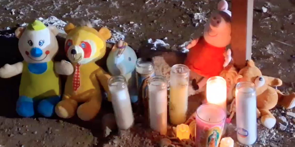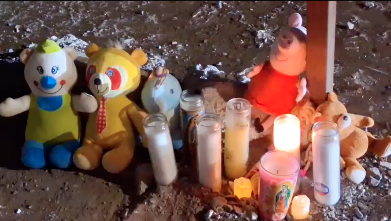 El sitio exacto donde ocurrió el trágico accidente fue adornado con veladoras encendidas, peluches, juguetes y flores, como símbolo del cariño y el dolor que dejó la partida de la pequeña.