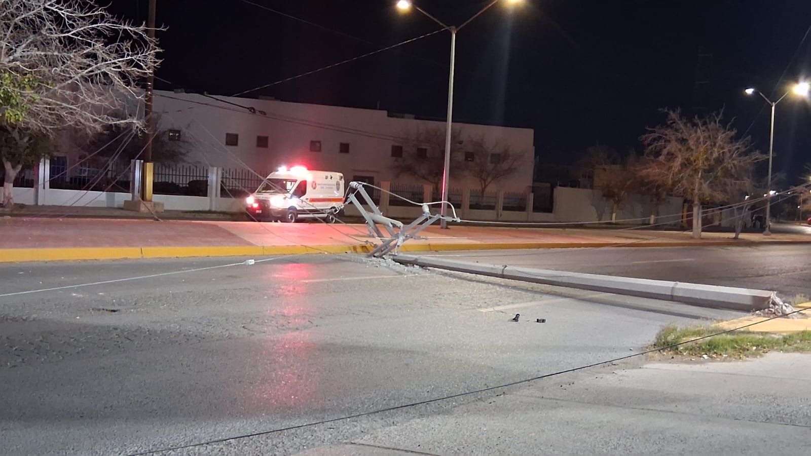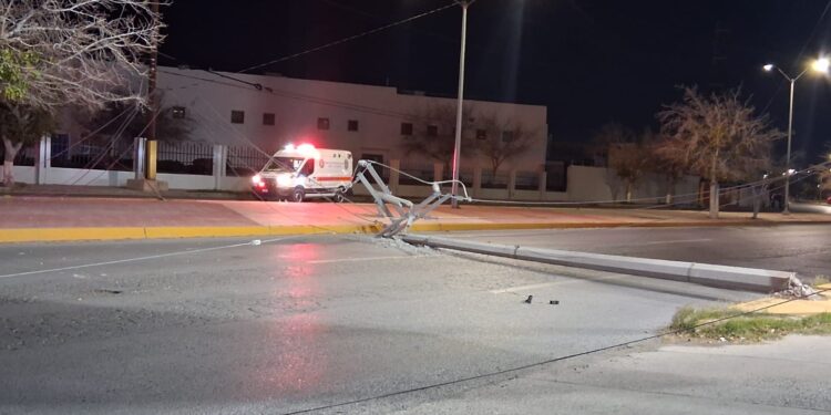 Ciudad Juárez, Chih.- Un aparatoso accidente ocurrió en la calle Laguna de Tamiahua, donde un conductor derribó tres postes tras perder el control de su vehículo. Tras el impacto, el responsable huyó del lugar, dejando el área con cables esparcidos sobre la vía.