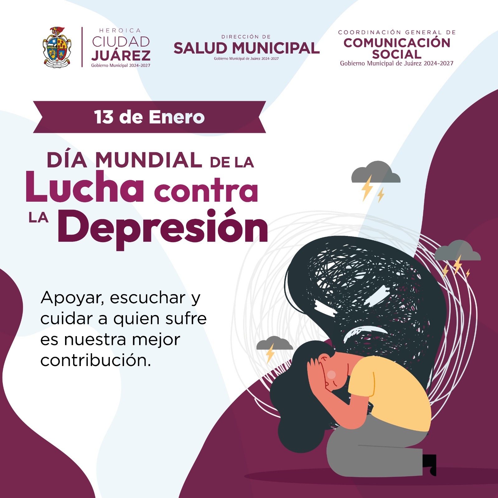 Ciudad Juárez, Chih.- En el marco del Día Mundial de la Lucha Contra la Depresión, la titular de Salud Municipal, Daphne Santana Fernández, exhortó a los juarenses a tomar en serio la salud mental, apoyarse mutuamente y acudir con profesionales ante cualquier señal de alarma.