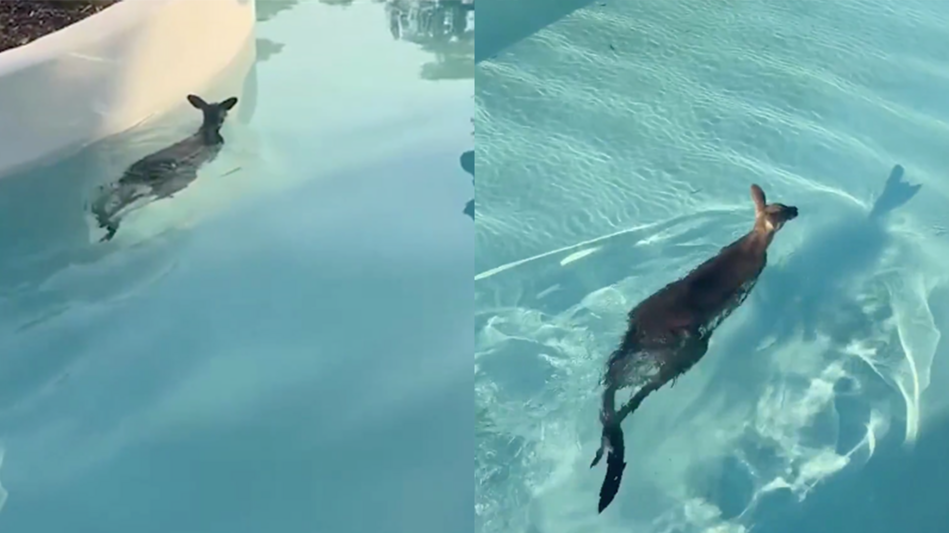 Canguro sorprende al nadar en parque acuático de Australia antes de su apertura