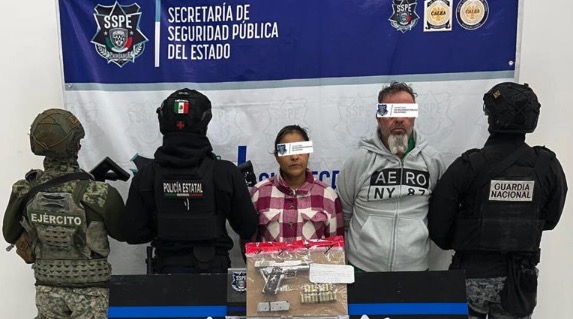 Durante la intervención, los agentes aseguraron un arma de fuego calibre .45 milímetros abastecida con 18 cartuchos útiles, así como una camioneta Dodge Ram con reporte de robo vigente en Estados Unidos. En el lugar también fue detenida Deisy A. G., quien acompañaba al presunto líder criminal.