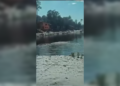 Hombre se viraliza por nadar en río tras nevada en Huachinera; divide opiniones en redes