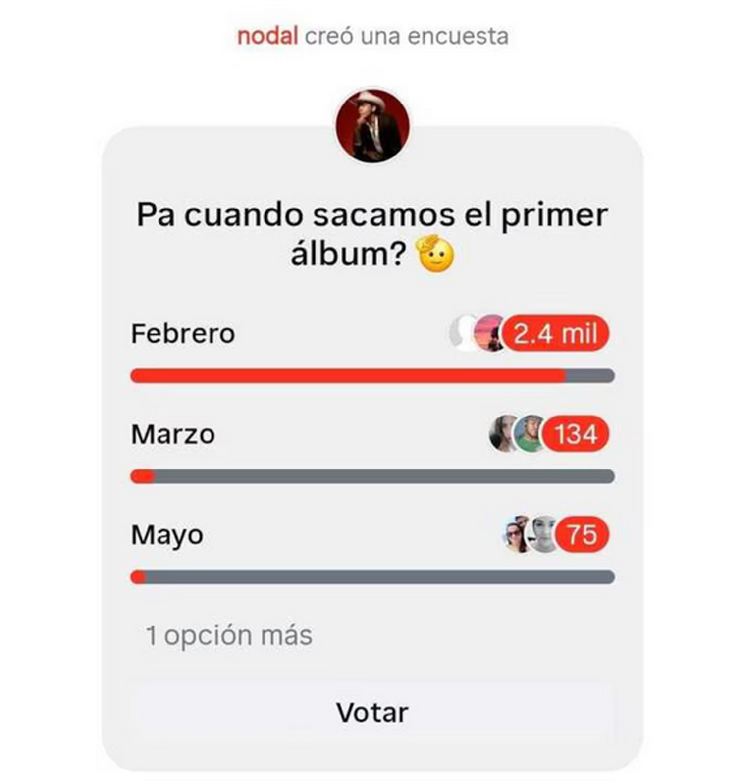 Como parte del lanzamiento, Nodal también involucró a su comunidad de fans al lanzar una encuesta para elegir el mes de salida del disco, ofreciendo como opciones febrero, marzo, abril y mayo. Hasta el momento, febrero lidera las votaciones, lo que podría adelantar la llegada del álbum en las próximas semanas.