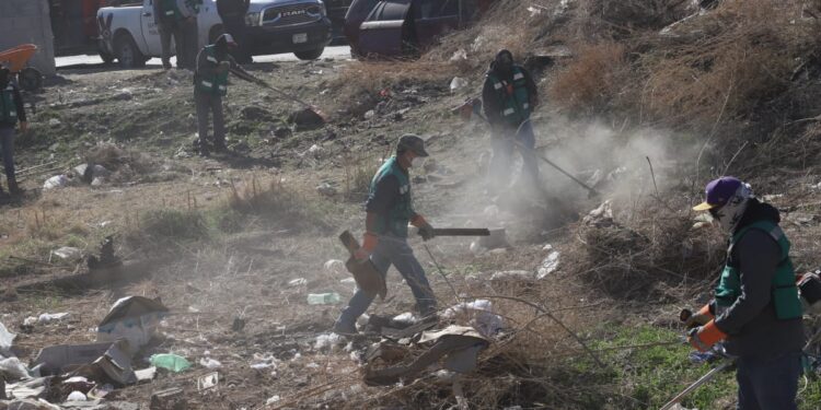 Ciudad Juárez.— Este viernes 16 de enero de 2026, personal de la Dirección de Limpia regresó al fraccionamiento Valle de Olivos para continuar con trabajos de limpieza y reordenamiento urbano, como parte del seguimiento a los compromisos establecidos con los vecinos de la zona.