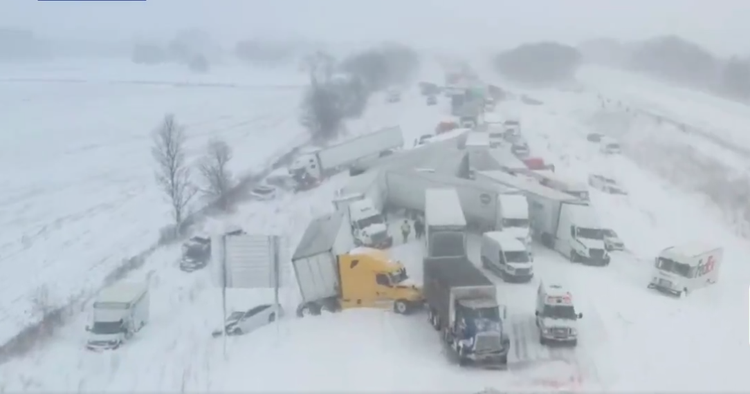 BREAKING: Drone footage reveals a massive pileup involving more than 100 vehicles in Michigan, with injuries reported as hazardous winter conditions grip the area.
