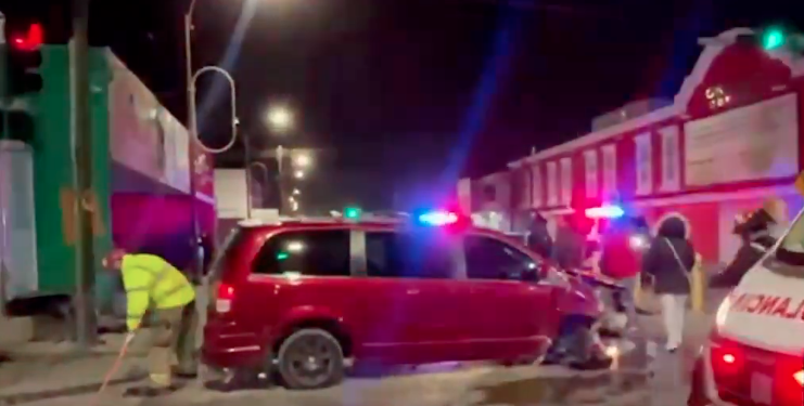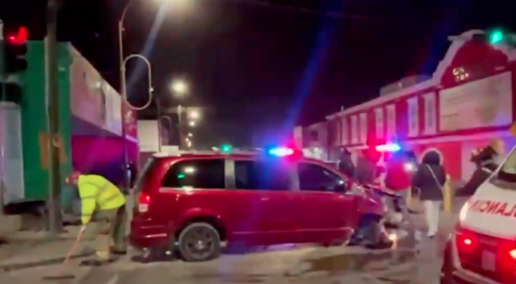 Ciudad Juárez, Chih.- Un aparatoso accidente vehicular movilizó a diversas corporaciones en el centro de Ciudad Juárez. El incidente ocurrió en el cruce de las calles Bolivia y 16 de Septiembre, frente al negocio “Gran Natural”, donde una camioneta tipo Caravan y un automóvil Hyundai azul colisionaron violentamente, provocando la volcadura de uno de los vehículos.