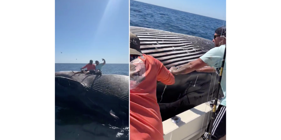 Las imágenes fueron publicadas en la cuenta de TikTok @trinitunafishing01, donde se observa cómo dos hombres saltan desde un bote hacia el cuerpo del animal marino, mientras sus compañeros ríen y toman fotografías. En la descripción del video, los pescadores aseguraron que estaban ebrios y que el cuerpo “no estaba podrido”, justificando así su comportamiento.