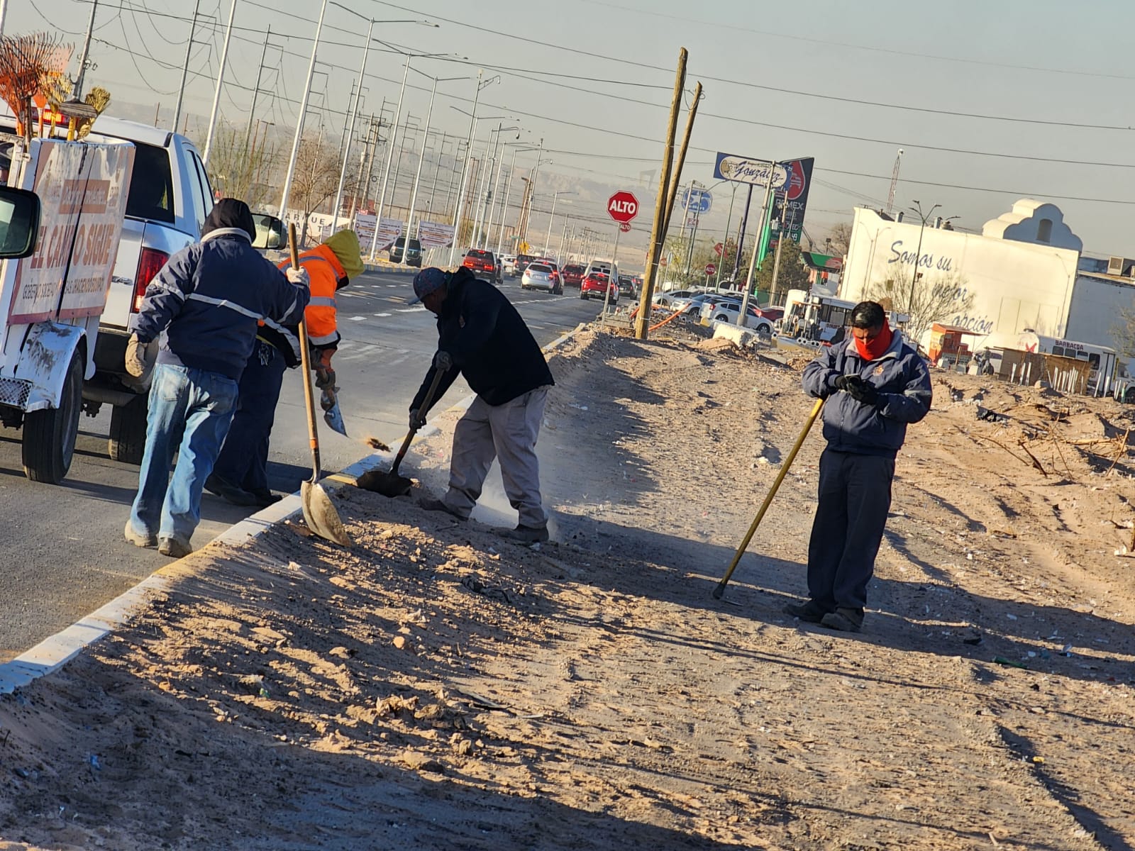 Ciudad Juárez, Chih.— Como parte de las acciones de la Cruzada del Cambio, la Dirección General de Servicios Públicos Municipales, a través de la Dirección de Limpia, intensificó este martes 20 de enero los trabajos de limpieza en tramos de la avenida Las Torres, una de las vialidades con mayor flujo vehicular en la ciudad.