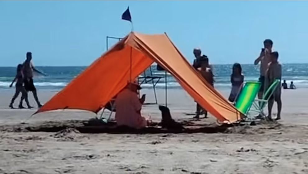 En el video se observa a los veraneantes instalando su carpa para protegerse del sol, cuando repentinamente el lobo marino aparece entre los bañistas. Sin mostrar temor alguno, el animal avanza con paso firme y se acomoda tranquilamente en el centro de la estructura, recostándose como si se tratara de su propio espacio.
