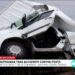 Minivan destrozada tras accidente contra poste