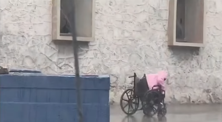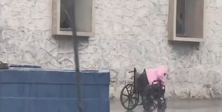 La grabación, tomada sobre la calle Diez de Septiembre y Oro, muestra en una primera escena al sujeto batallando para avanzar en la silla. Sin embargo, más adelante se le observa bajarse y empujarla mientras sube una pendiente sin mostrar señales de dolor o discapacidad.