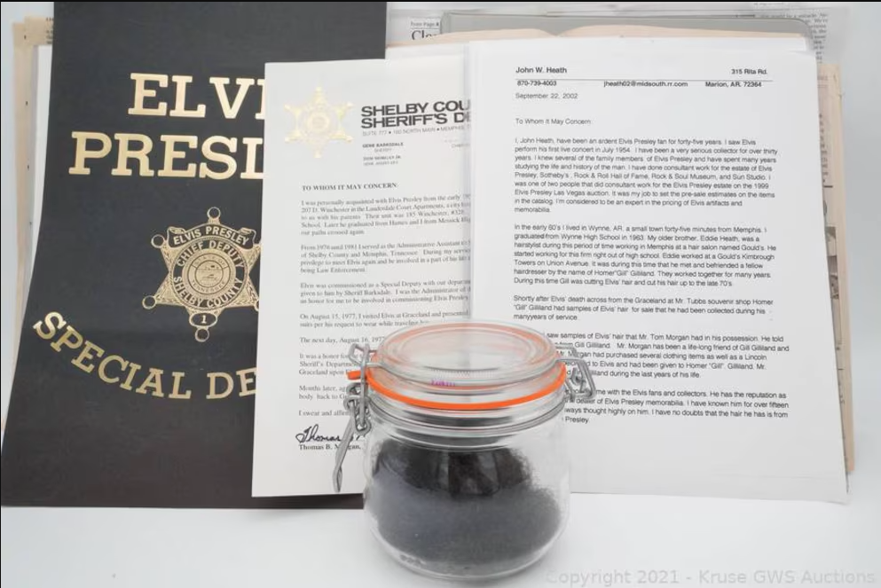 La pieza, recolectada por Homer ‘Gill’ Gilleland, barbero personal del “Rey del Rock and Roll”, fue certificada por múltiples expertos en memorabilia, incluyendo a Tom Morgan Jr., amigo cercano del cantante; John W. Heath, especialista en objetos de Elvis; y John Reznikoff, reconocido en el mundo del coleccionismo de cabello.