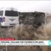 Unidad de personal volcada por paviménto mojado
