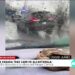 Camioneta varada tras caer en alcantarilla