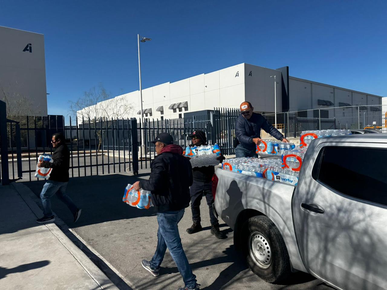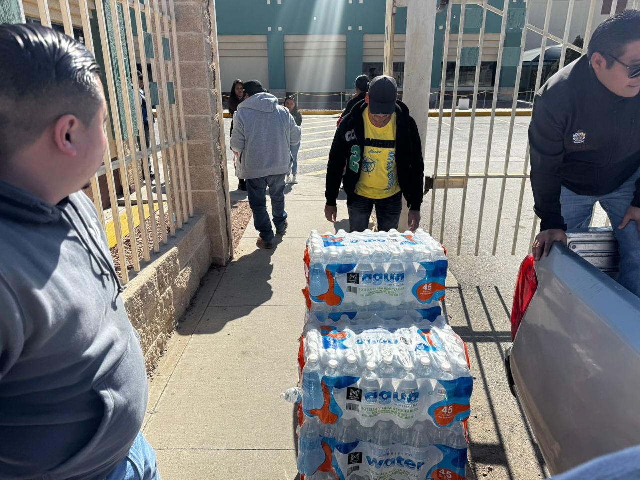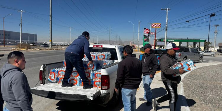 Ciudad Juárez, Chih. – En un acto de apoyo humanitario, personal de la Coordinación de Atención Ciudadana del Municipio acudió este jueves a las afueras de varias maquiladoras en el suroriente de la ciudad para entregar agua embotellada a ex trabajadores que permanecen en protesta tras la suspensión de actividades en dichas plantas.