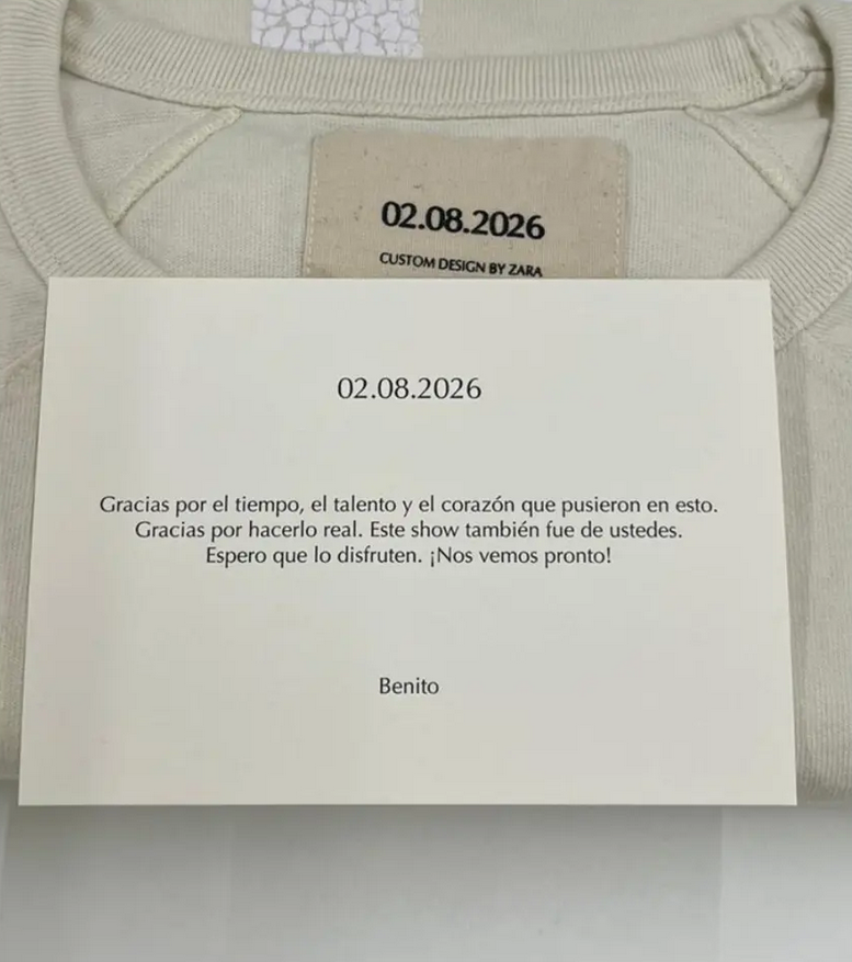 Tras el show, el artista volvió a sorprender al agradecer públicamente a los empleados de Zara que colaboraron en la confección del vestuario. A cada uno les envió camisetas conmemorativas acompañadas de un mensaje manuscrito en el que les expresó: “Gracias por el tiempo, el talento y el corazón que pusieron en esto. Gracias por hacerlo real, este show también fue de ustedes. Espero que lo disfruten. ¡Nos vemos pronto! Benito”. Este gesto fue destacado por diversos medios internacionales como una muestra de humildad y gratitud.