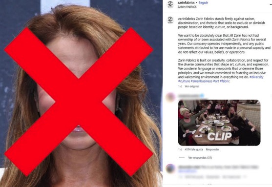 Por su parte, la empresa Zarin Fabrics también se deslindó de las declaraciones de su excofundadora, aclarando que no mantiene relación con ella desde hace varios años. En un mensaje publicado en redes sociales, la compañía manifestó su rechazo al racismo y a cualquier expresión discriminatoria.