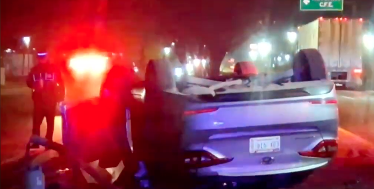 Ciudad Juárez, Chih.- Durante la noche del domingo se registró una volcadura sobre la carretera Panamericana, en el tramo correspondiente a la entrada o salida de Ciudad Juárez, en sentido de norte a sur.