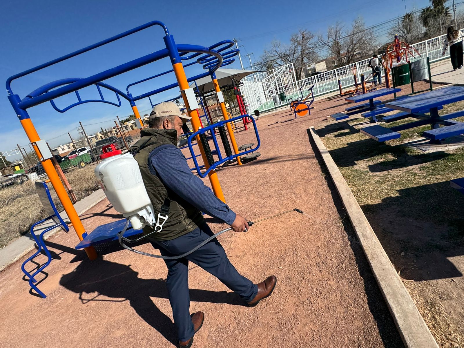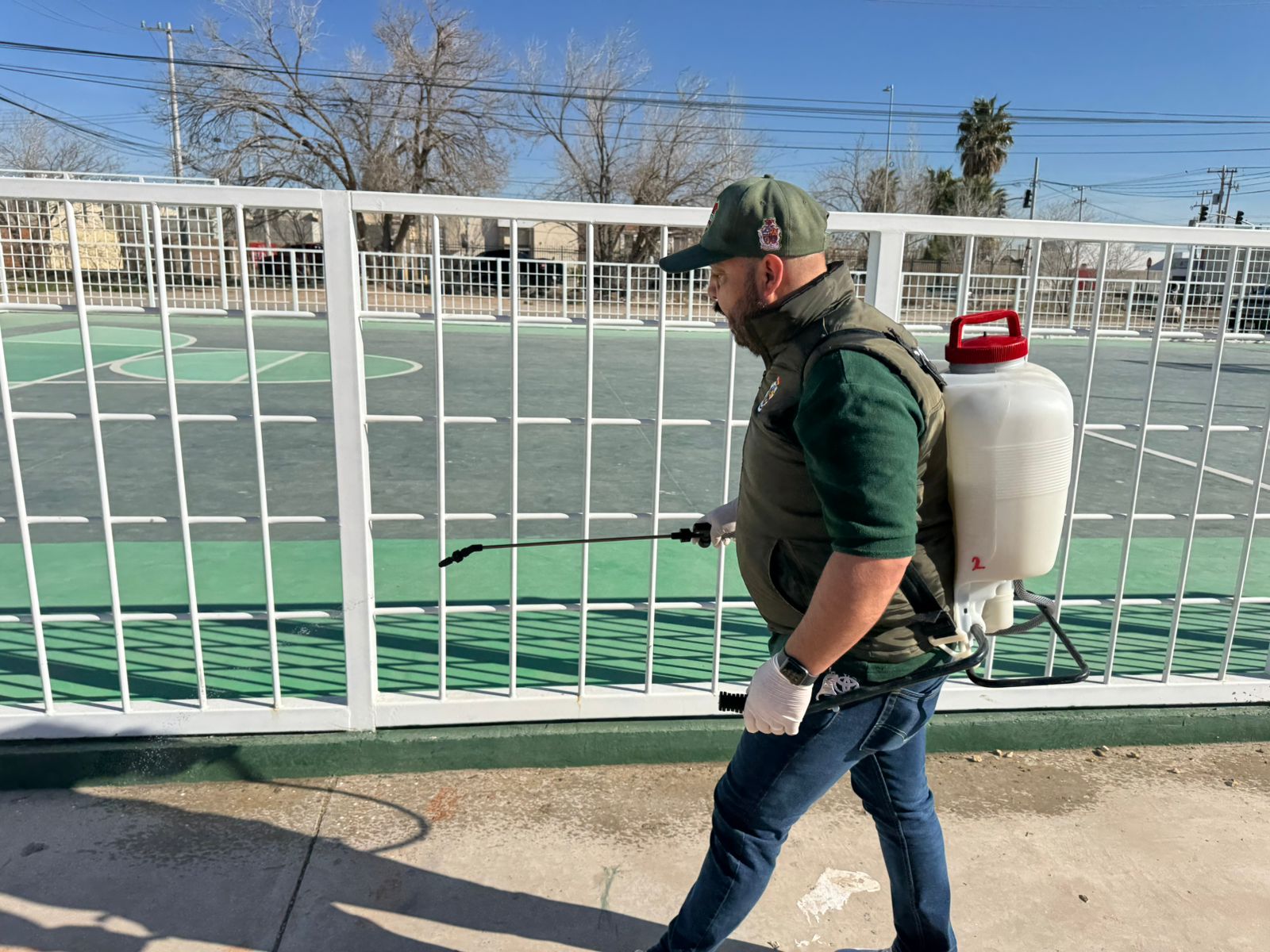 Ciudad Juárez, Chih.- El pasado lunes 16 de febrero, personal de la Dirección de Ecología puso en marcha una fumigación masiva en los parques del área de Valle del Sol, comenzando en el parque Tres Cantos.