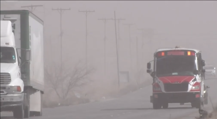Ciudad Juárez, Chih.- Las fuertes ráfagas de viento que se registraron en la frontera ocasionaron momentos de tensión para conductores que transitaban por avenidas principales, donde por momentos “casi no se veía nada” debido a la tierra suspendida en el ambiente.