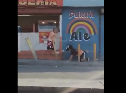 El momento que detonó la reacción ocurrió cuando el joven se colocó frente a la pared de una dulcería y simuló marcar territorio levantando la pierna. Al percatarse de la acción, una mujer adulta salió de un establecimiento cercano con un recipiente y le lanzó agua, obligándolo a retirarse del lugar.