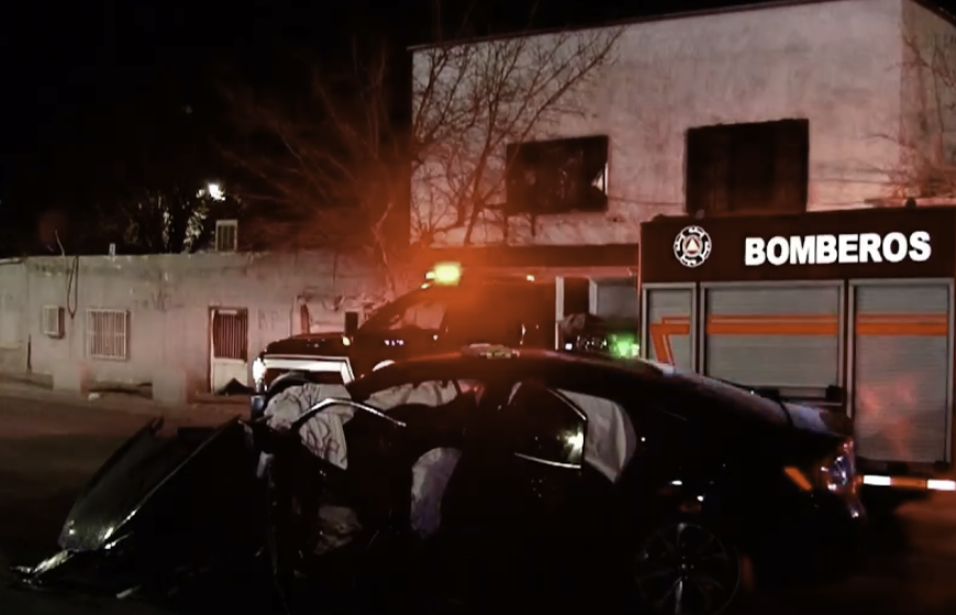 Juárez.- Un fuerte accidente vial se registró en el cruce de las calles Norzagaray y Fierro, en la colonia Bellavista, donde un automóvil terminó severamente dañado tras impactarse contra un muro de contención.