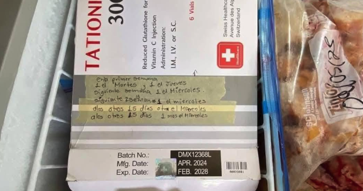 Tapalpa, Jalisco, México. Entre los objetos asegurados en la cabaña donde fue localizado Nemesio Oseguera Cervantes, alias “El Mencho”, autoridades encontraron el medicamento Tationil Plus 3000 mg, un tratamiento inyectable utilizado como terapia complementaria en ciertos padecimientos crónicos.