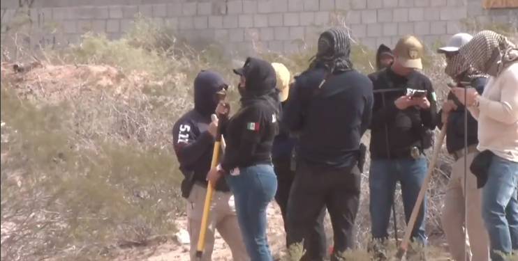 El predio inspeccionado se encuentra sobre el bulevar Fundadores, hasta donde arribaron las autoridades con equipo especializado para realizar excavaciones y revisión detallada del terreno.