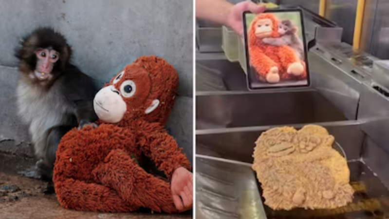Redes Sociales.- Un restaurante en Buenos Aires creó una milanesa especial inspirada en la historia viral de un mono bebé huérfano que abrazaba un peluche.