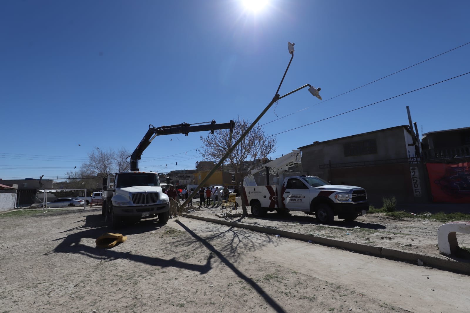 Durante los trabajos, el coordinador operativo de Alumbrado Público, Juan Huerta, explicó que se retiró el poste que se encontraba en medio del campo, además de instalar dos arbotantes dobles con sus bases, cerca de 50 metros de cableado y seis luminarias de 80 watts. También se amplió la cobertura de iluminación hacia el parque contiguo.