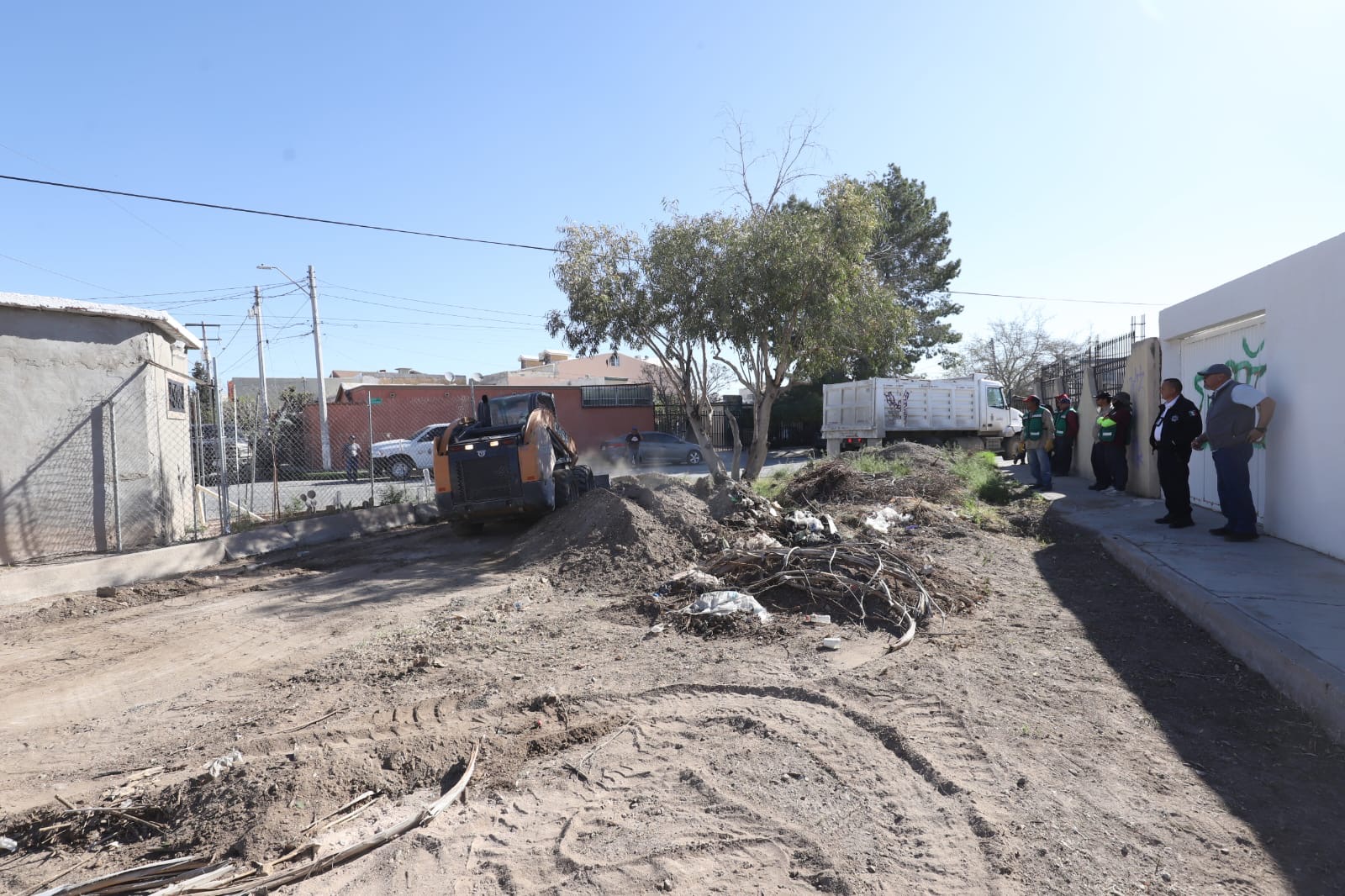 Ciudad Juárez, Chih.– Como parte del Operativo de Reordenamiento Urbano impulsado por el Gobierno Municipal, este jueves personal de distintas dependencias intervino en el fraccionamiento San Ángel para recuperar un espacio público y habilitar una conexión vial que permanecía obstruida desde hace años.