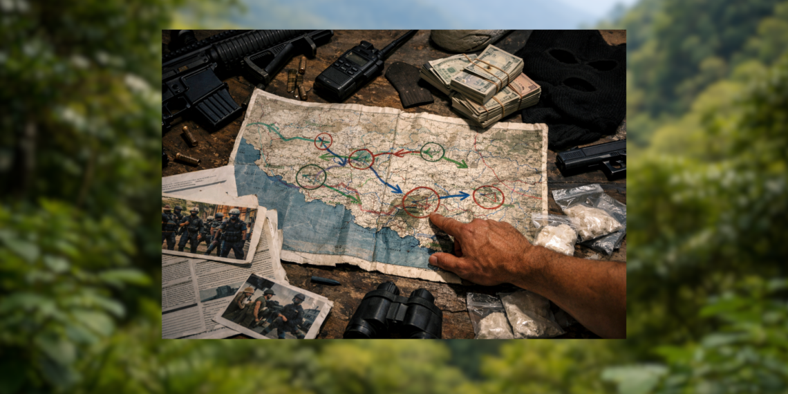 Ciudad de México.– Un mapa presuntamente ligado al Cártel Jalisco Nueva Generación (CJNG) habría revelado la estrategia del grupo criminal para expandirse en la región Sierra-Costa de Michoacán, una zona clave para el tráfico de drogas, armas y precursores químicos.