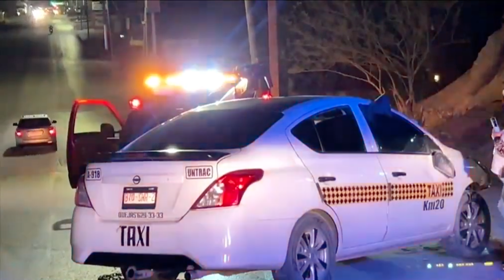Ciudad Juárez, Chih.- Un aparatoso accidente vehicular se registró durante la noche y madrugada en la avenida Perimetral Carlos Amaya, donde un taxi terminó volcado tras perder el control de la unidad.