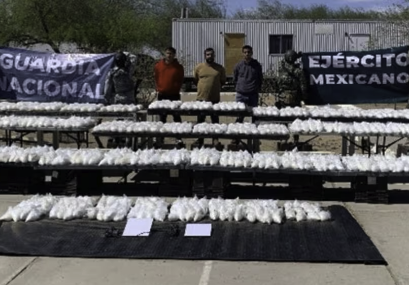 México.- Elementos del Ejército Mexicano y de la Guardia Nacional aseguraron 490 kilogramos de metanfetamina, dos vehículos, dos antenas de internet satelital Starlink y detuvieron a tres personas en las inmediaciones del Puesto Militar de Seguridad Estratégico “Cucapah”, en el municipio de San Luis Río Colorado.