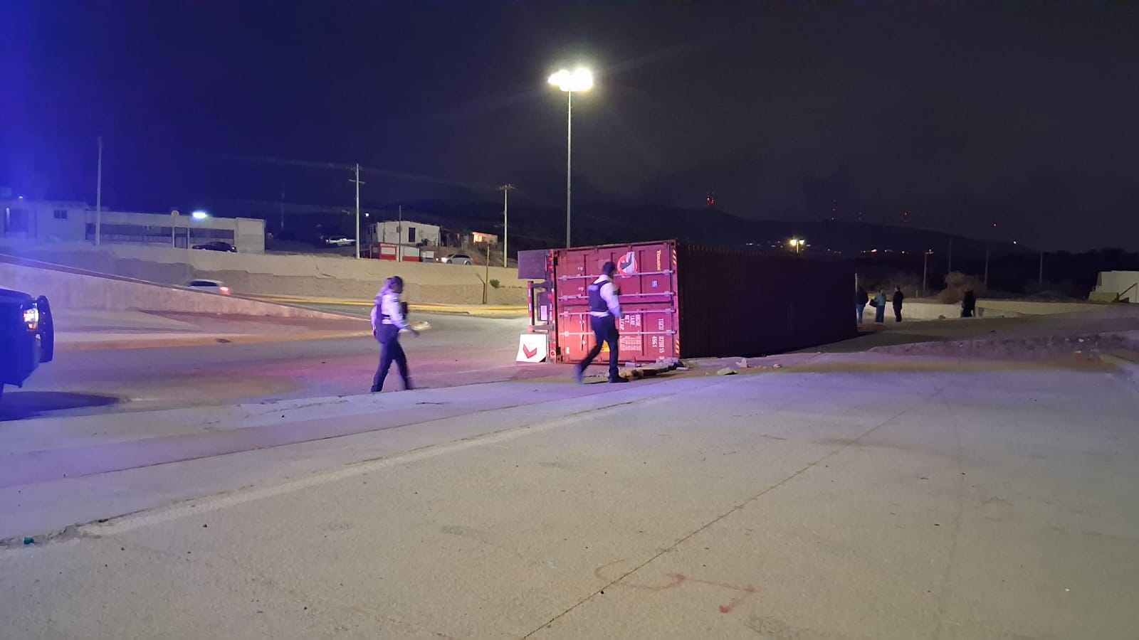 Tráiler vuelca en glorieta de Anapra tras presunto exceso de velocidad
