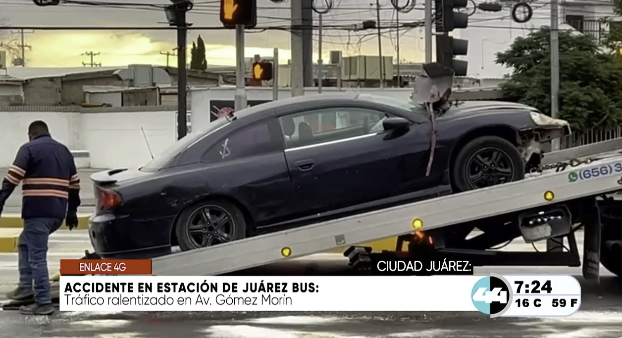 Ciudad Juarez, Chih.- Un vehículo de modelo antiguo, aparentemente un Dodge Stratus, fue localizado abandonado tras impactarse contra la infraestructura del sistema de transporte Juárez Bus. El accidente se registró durante la mañana de este sábado en el cruce de la avenida Manuel Gómez Morín y la calle de Los Cedros, precisamente en la zona destinada a la vuelta a la izquierda del carril confinado. De acuerdo con el reporte de los oficiales de seguridad vial, el automóvil se encontraba en el lugar desde aproximadamente las 5:30 de la mañana, con el frente completamente destrozado, el parabrisas quebrado y las bolsas de aire del copiloto activadas, lo que sugiere que hubo personas lesionadas que huyeron de la escena. El vehículo portaba un letrero de venta con un número telefónico en el vidrio posterior, el cual servirá como pista para localizar al propietario. El incidente provocó daños considerables en muros de contención, banquetas y señalización, además de dejar un derrame de aceite sobre el pavimento.