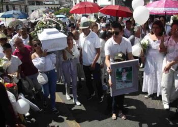 Con globos y flores y con gritos de justicia, familiares, amigos y vecinos le dieron el último adiós a la ...