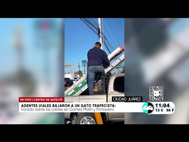 Agentes viales bajaron a un gato trapecista